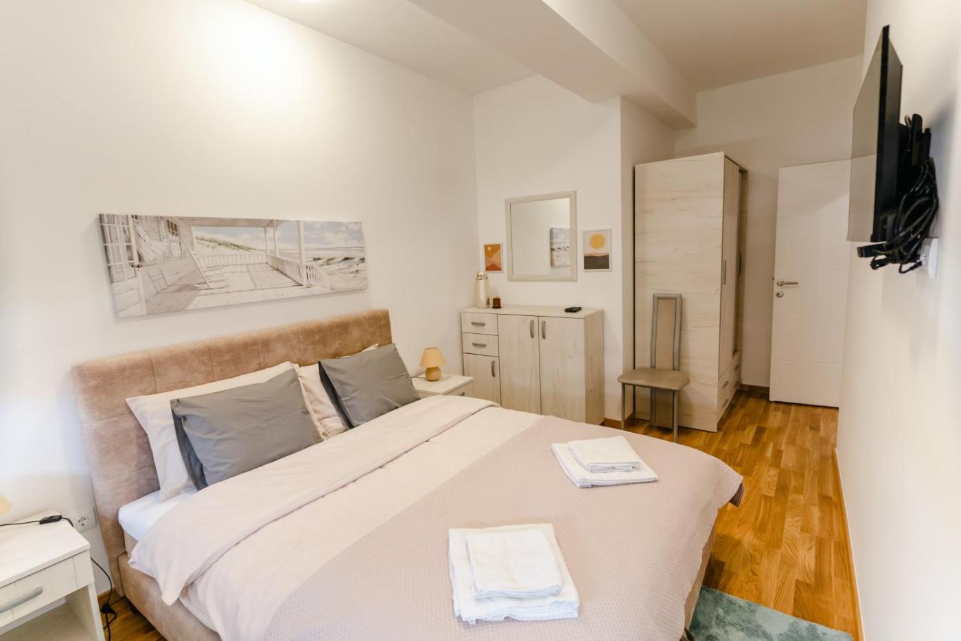 One-Bedroom Apartment. The apartments kitchen is available for cooking and storing food. The apartment has air conditioning, heating, as well as a terrace with garden views. The unit has 2 beds.