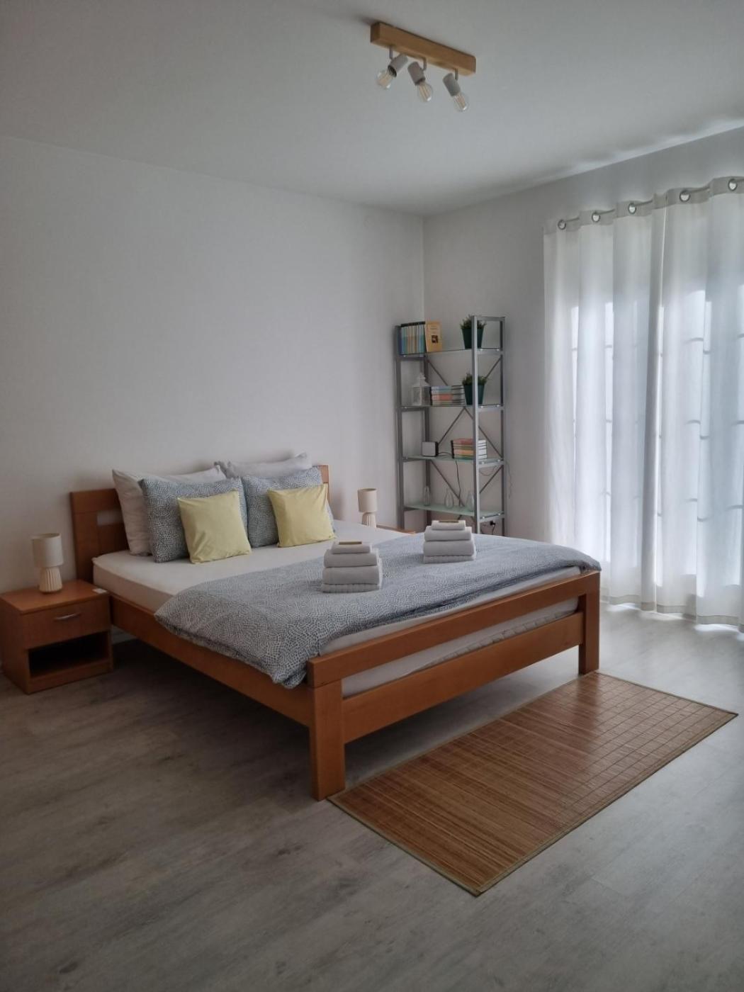 One-Bedroom Apartment. This apartment consists of 1 living room, 1 separate bedroom and 1 bathroom with a shower and free toiletries. Guests can make meals in the kitchen that is equipped with a stovetop, a refrigerator, kitchenware and a microwave. This apartment features air conditioning, soundproof walls, flat-screen TV with cable channels, as well as chocolate for guests. The unit offers 3 beds.
