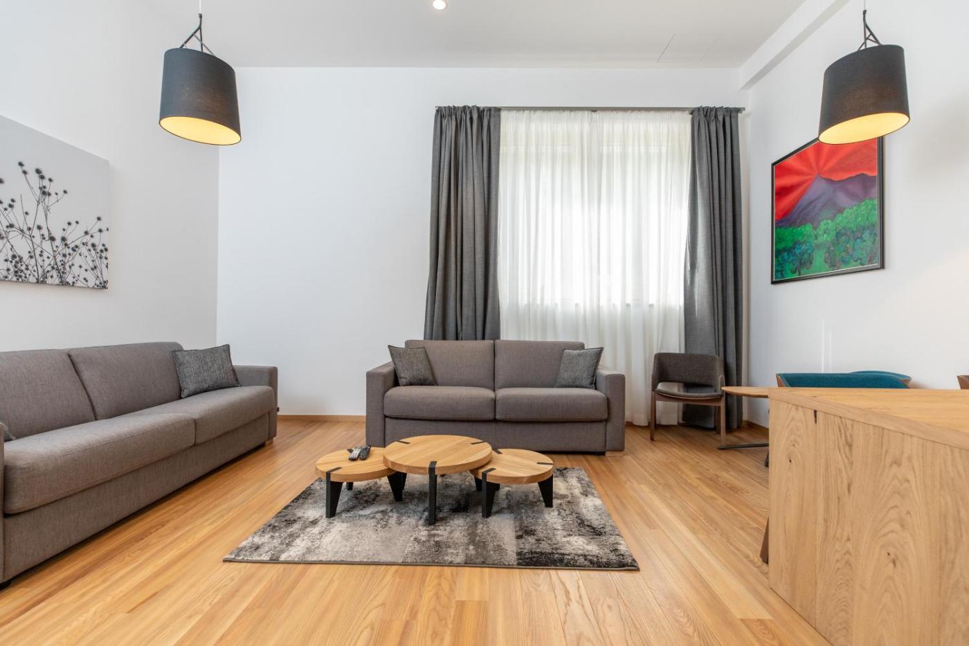 Duplex Apartment. This spacious apartment features 1 living room, 2 separate bedrooms and 2 bathrooms with a walk-in shower and bathrobes. The apartments kitchenette, which has a tea and coffee maker, is available for cooking and storing food. Boasting a terrace with garden views, this apartment also features soundproof walls and a flat-screen TV with cable channels. The unit has 3 beds. ;