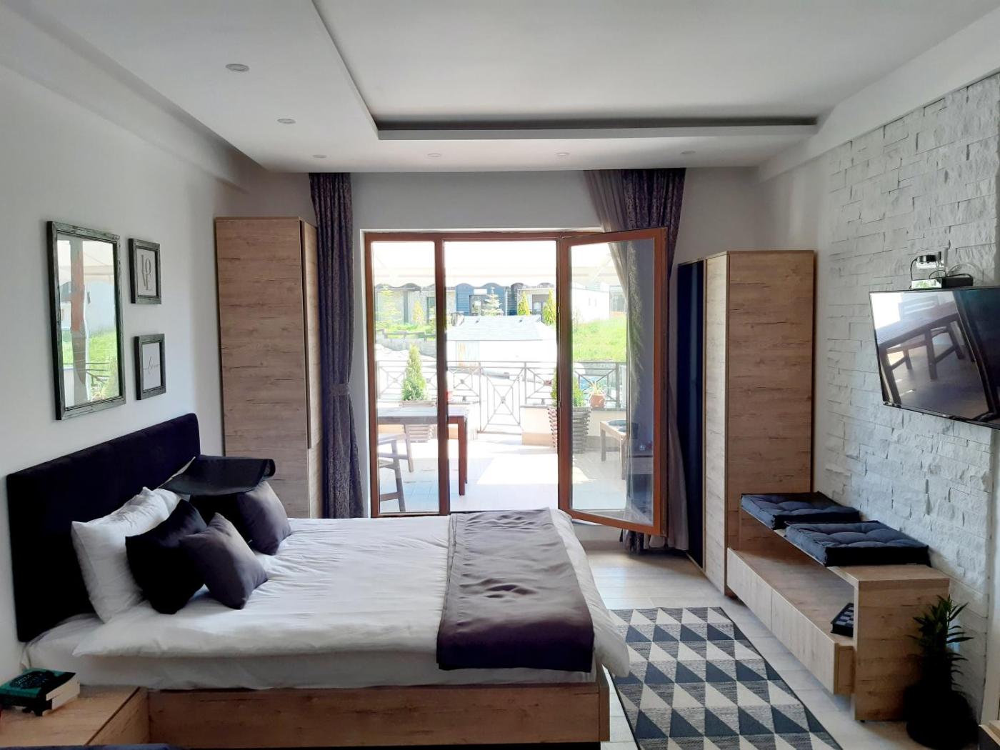 Studio Apartment. This apartments standout feature is the pool with a view. Featuring a private entrance, this apartment also is comprised of 1 bedroom, a seating area and 1 bathroom with a walk-in shower and a hairdryer. In the kitchen, guests will find a stovetop, a refrigerator, kitchenware and a microwave. Boasting a terrace with mountain views, this apartment also offers soundproof walls and a flat-screen TV with cable channels. The unit offers 2 beds.