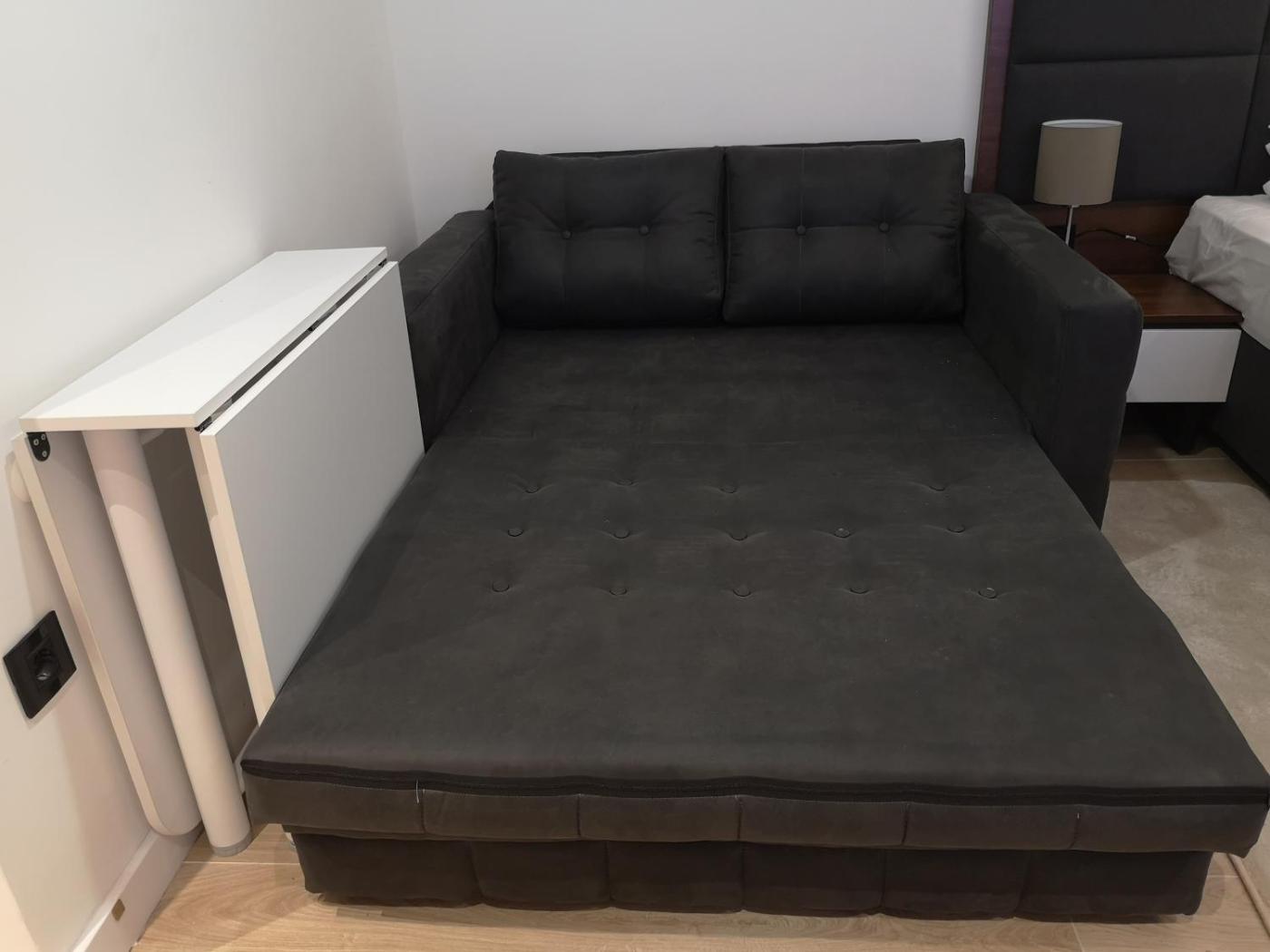 Studio. The studio features a wardrobe, a safe deposit box, as well as a private bathroom boasting a walk-in shower and a hairdryer. Meals can be prepared in the well-fitted kitchen, which features a stovetop, a refrigerator and kitchenware. The studio has parquet floors, a seating area with a flat-screen TV with cable channels, a private entrance, soundproof walls, as well as a tea and coffee maker. The unit has 2 beds.
